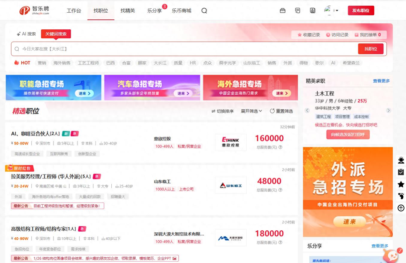现在有些平台专门聚合企业的招聘需求,特别是那些有跨国招聘需求的企业。比如智乐聘这类猎头做单平台,很多海外项目与国内中高端岗位,完美解决了SOHO猎头“找好单难、做单流程烦、结算慢”的核心痛点。