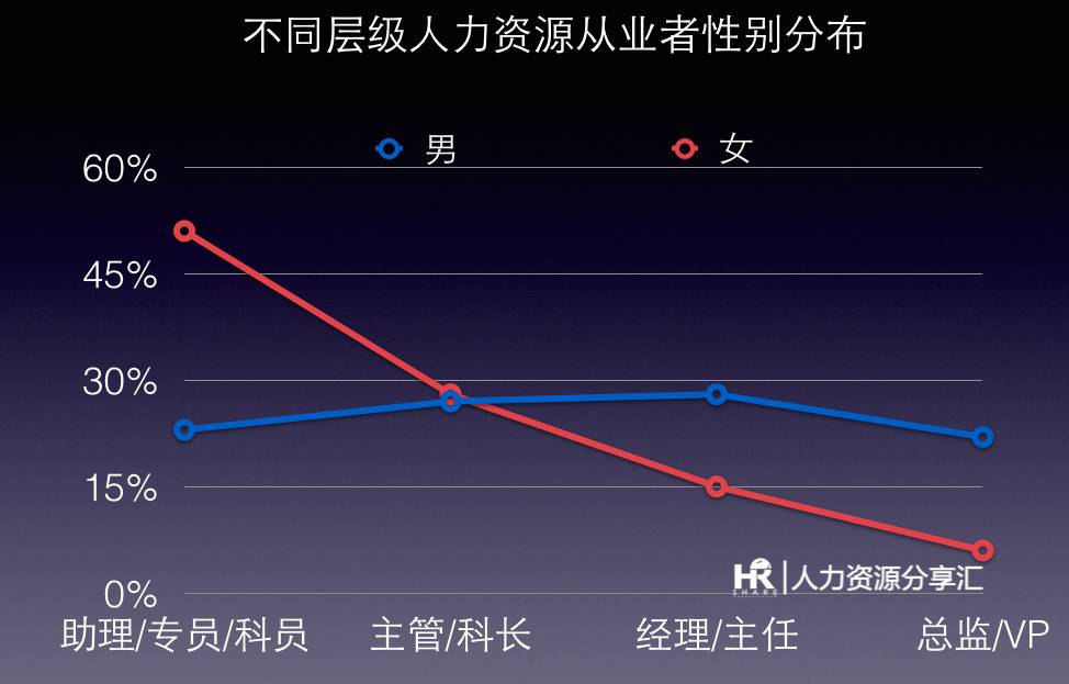 ▲男性在不同层级的分布相对均匀,而女性HR在不同层级中的占比逐渐下降。