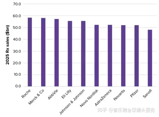 2025年全球制药企业销售额TOP10预测(图片来源:Evaluate Pharma)