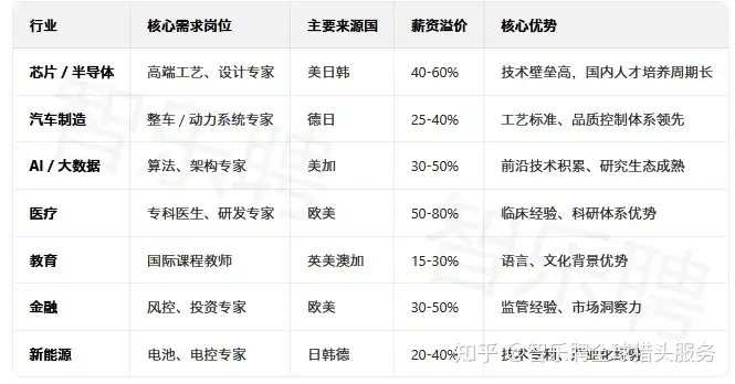比如精密运动控制系统工程师,应用于机器人、CNC 设备,这方面日系德系专家最受欢迎;也有汽车制造技术专家,新能源汽车三电系统(电池、电机、电控)领域,这类也是日德专家主导