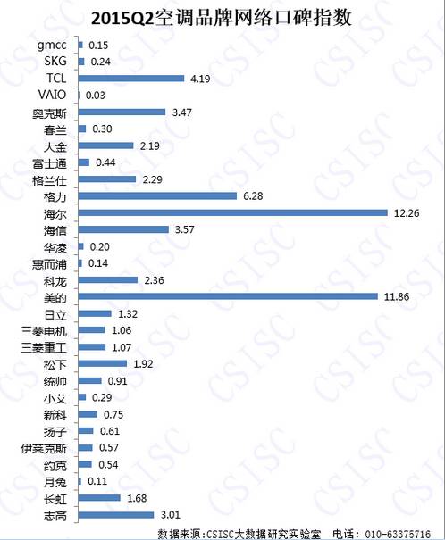 10月26日,2015二季度《中国空调品牌口碑研究报告》(以下简称《报告》发布,《报告》以市场表现比较活跃的品牌作为监测研究对象,共监测采集71个品牌数据,从中筛选出29个各方面比较突出的空调品牌作为研究对象而产生的。